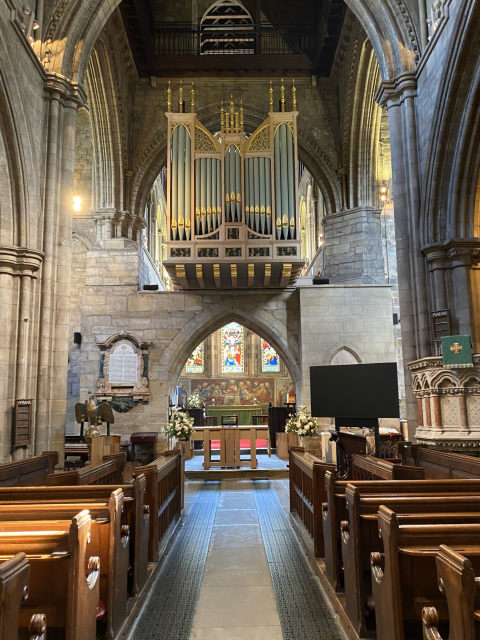 Interior of St.Cuthbert's Darlington. James Henry GREATHEAD was baptised in this church. In 1820 there would have been a gallery and box pews.