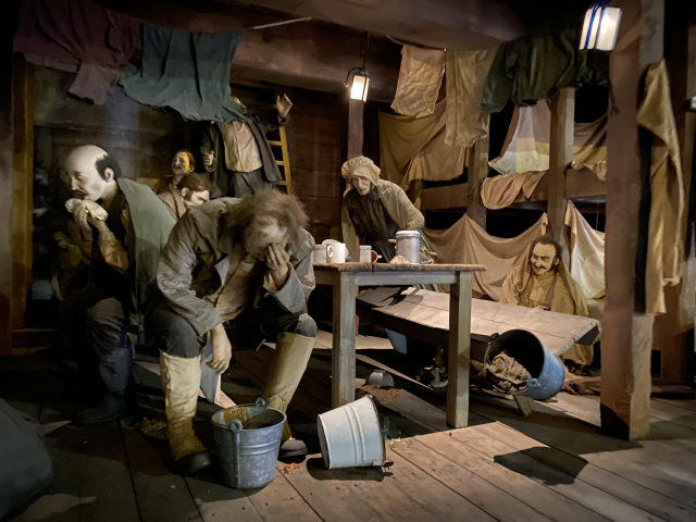 This diorama of conditions on board a settler ship to Canada in 1823 would have been very close to c…
