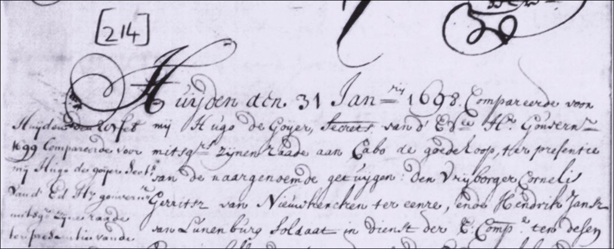 Contract between freeman Cornelis Gerritsz van Nieuwkerken and Hendrik Jansz of Lunenburg, soldier in the service of the VOC. Hendrik Jansz is to serve as construction and general servant for the period of one year in exchange for a monthly pay of twelve guilders as well as boarding and lodging.