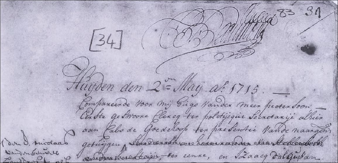 CJ 2877 ref. 34, p. 83: Nicolaas van den Heuvel, Landrost of Stellenbosch and Drakenstein - Izaacq Dalgue of Holstein